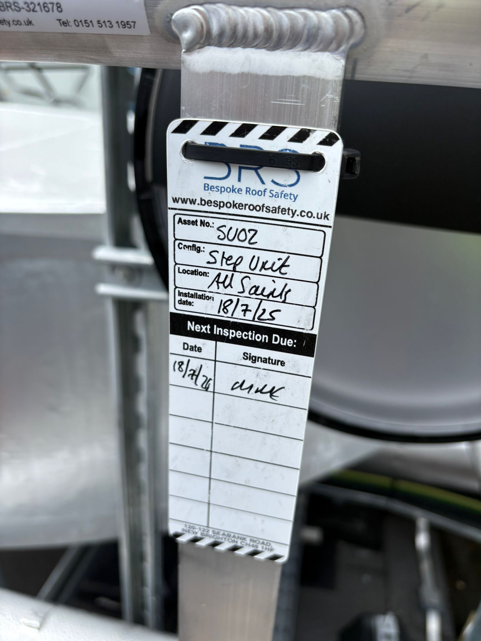 Bespoke Roof Safety offer regular maintenance contracts and certificated testing of all their installations, together with existing installations carried out by others. Every asset that we inspect is assigned a unique identifier and saved to our system to allow timely re-inspection reminders to be sent out – we are happy to conduct inspections of both assets that we have installed, together with assets installed by third parties. For more information on maintaining and certifying your roof access system, or to book an inspection, contact our team of experts today.